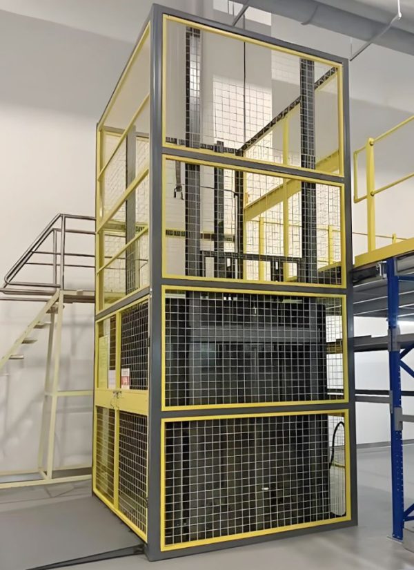 Freight elevator with mesh shaft is a mechanical equipment for cargo lifting and lowering powered by hydraulic cylinders, no need to dig a pit. The form of rail cargo lift is diversified, and it is divided into two types, includes one piston and two piston.