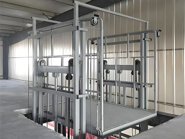 Goods elevator with guide rails is a mechanical equipment for cargo lifting and lowering powered by hydraulic cylinders, no need to dig a pit. The form of Goods elevator with guide rails is diversified, and it is divided into two types, includes one piston and two piston. Goods elevator with guide rails operate safely through chains and wire steel ropes, with a maximum load capacity of 30 tons and a lifting height of up to 20 m. It’s overhead height is unlimited and can be customized according to needs, which is convenient, fast and practical.